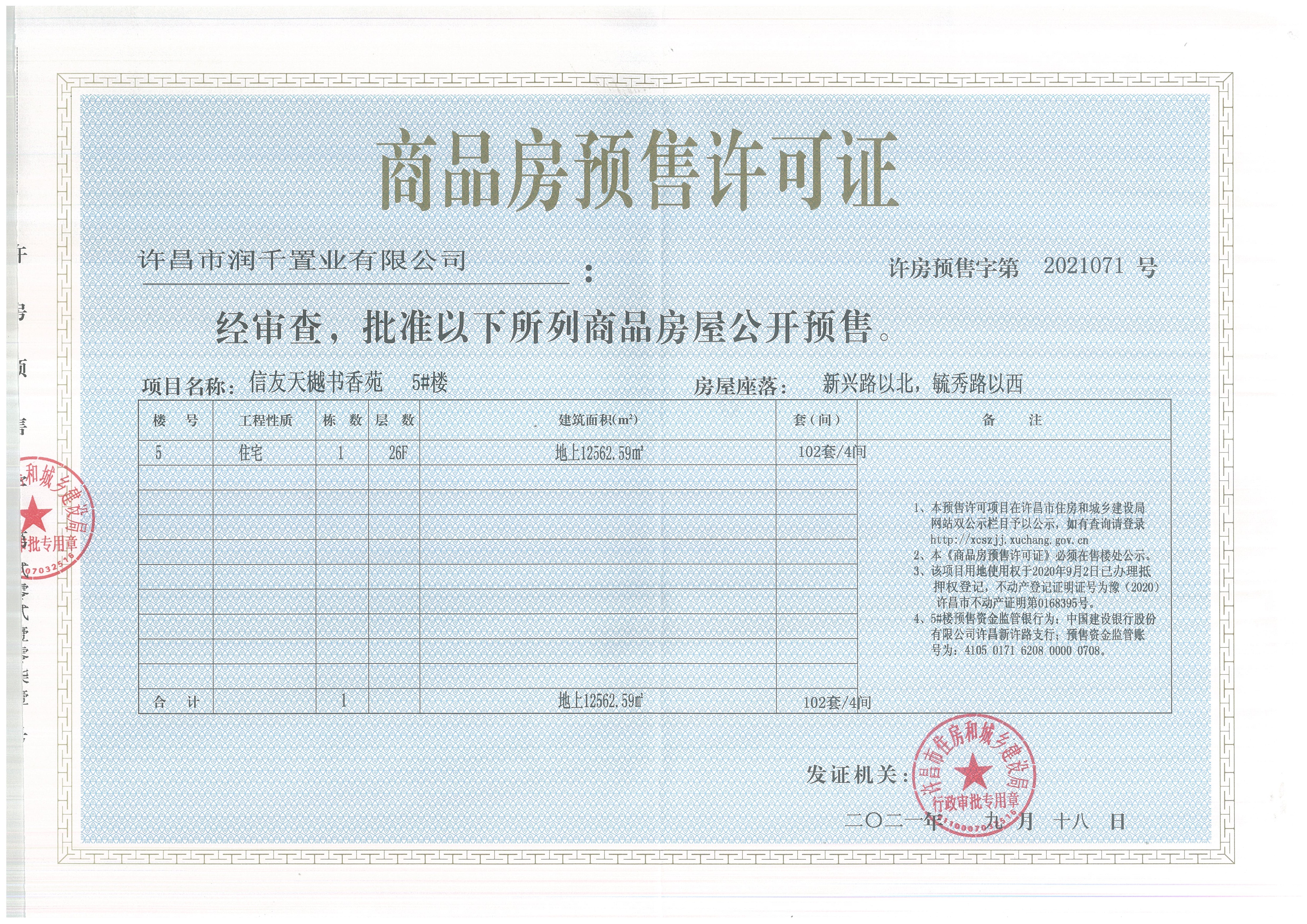 许房预售字第2021071号(许昌市润千置业有限公司)