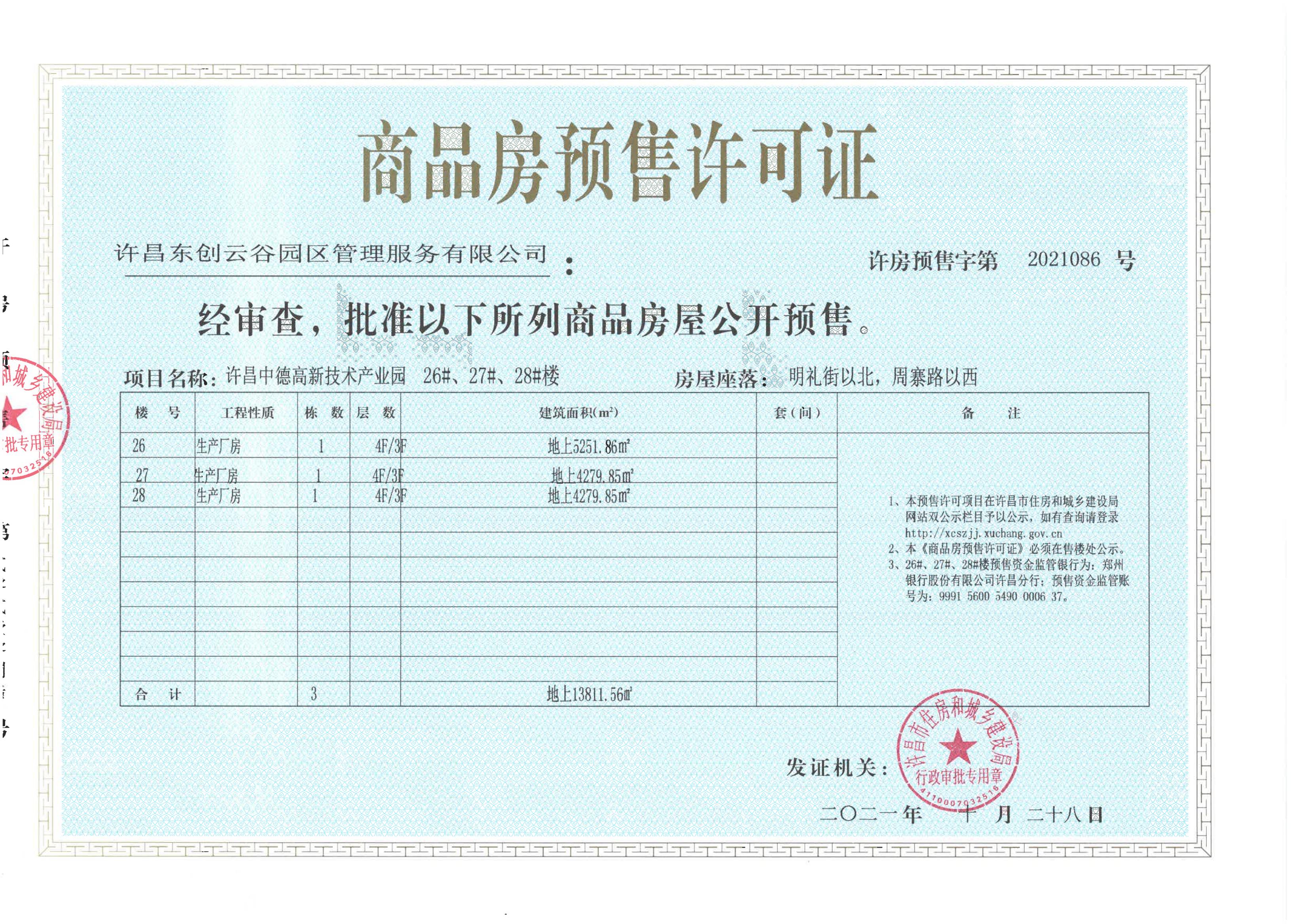 许房预售字第2021086号(许昌东创云谷园区管理服务有限公司)