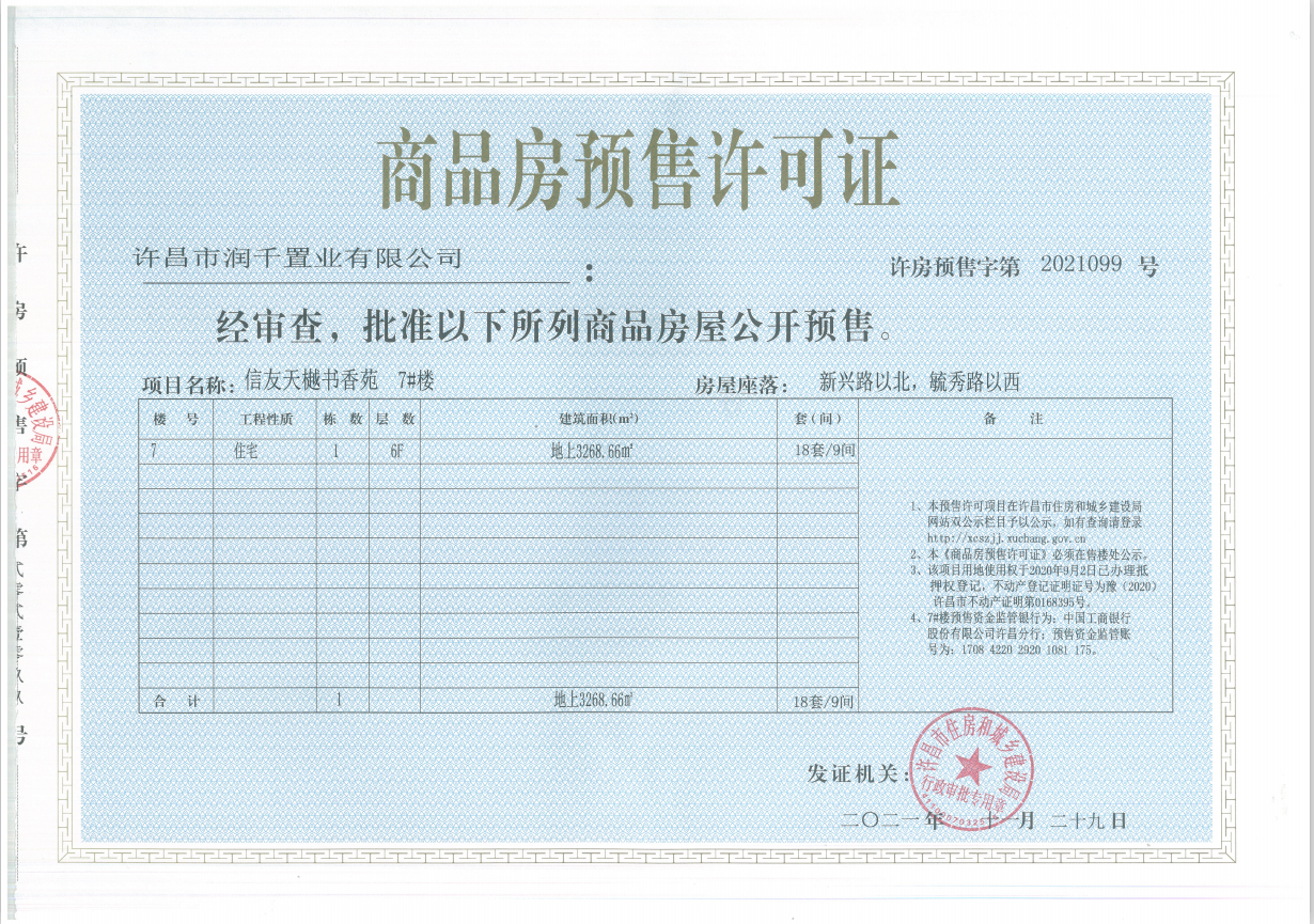 许房预售字第2021099号(许昌市润千置业有限公司)