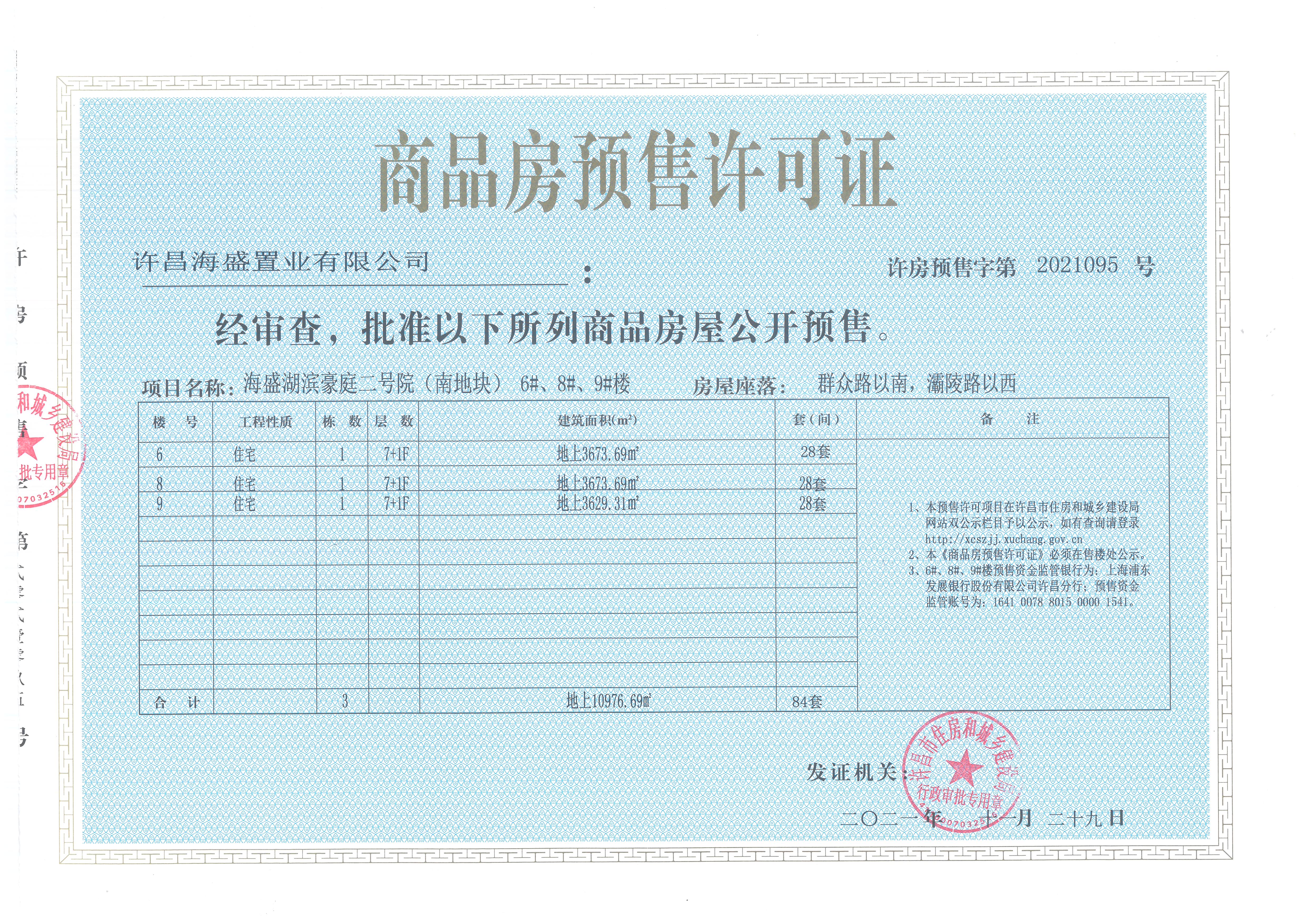 许房预售字第2021095号(许昌海盛置业有限公司)