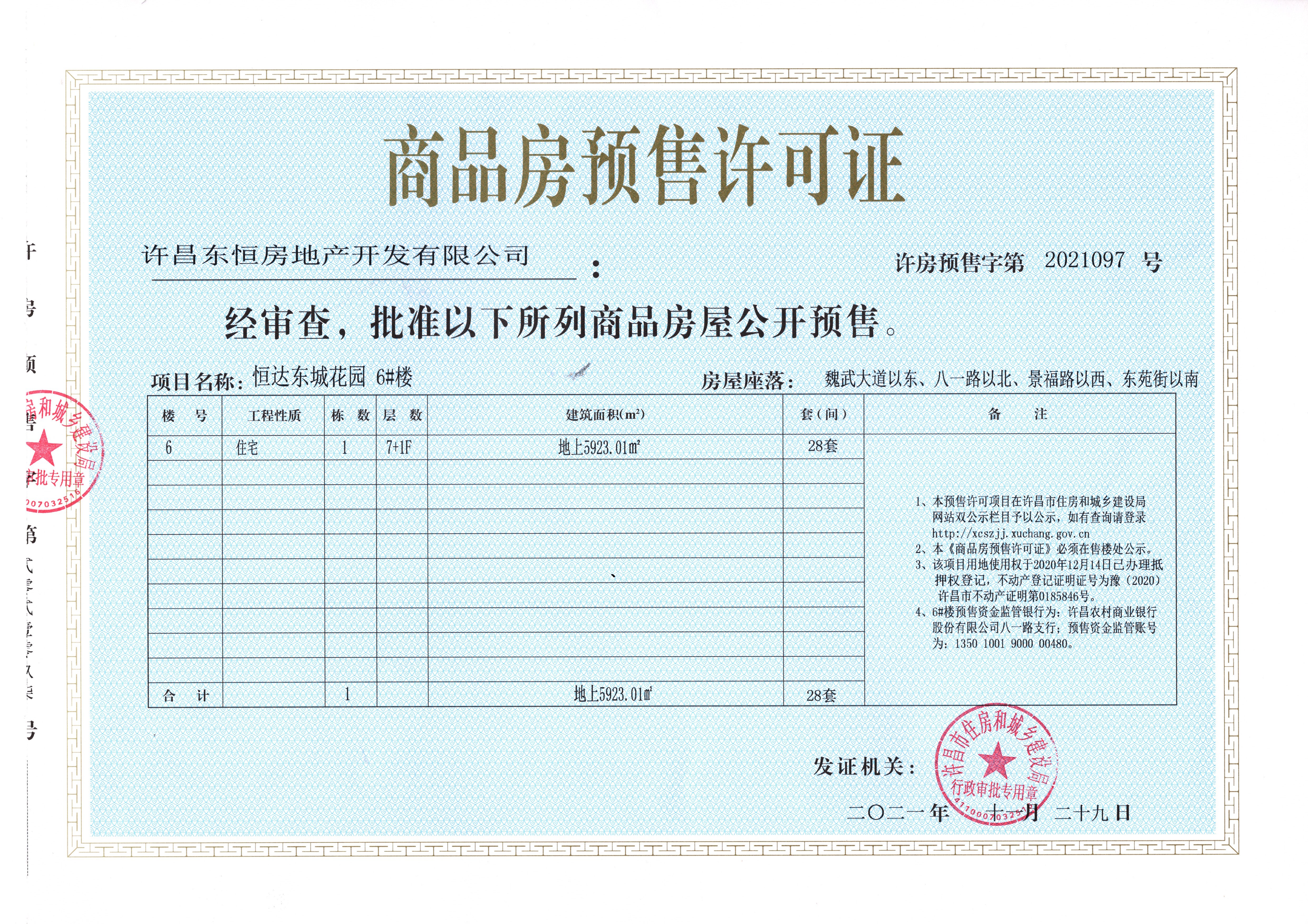 许房预售字第2021097号(许昌东恒房地产开发有限公司)