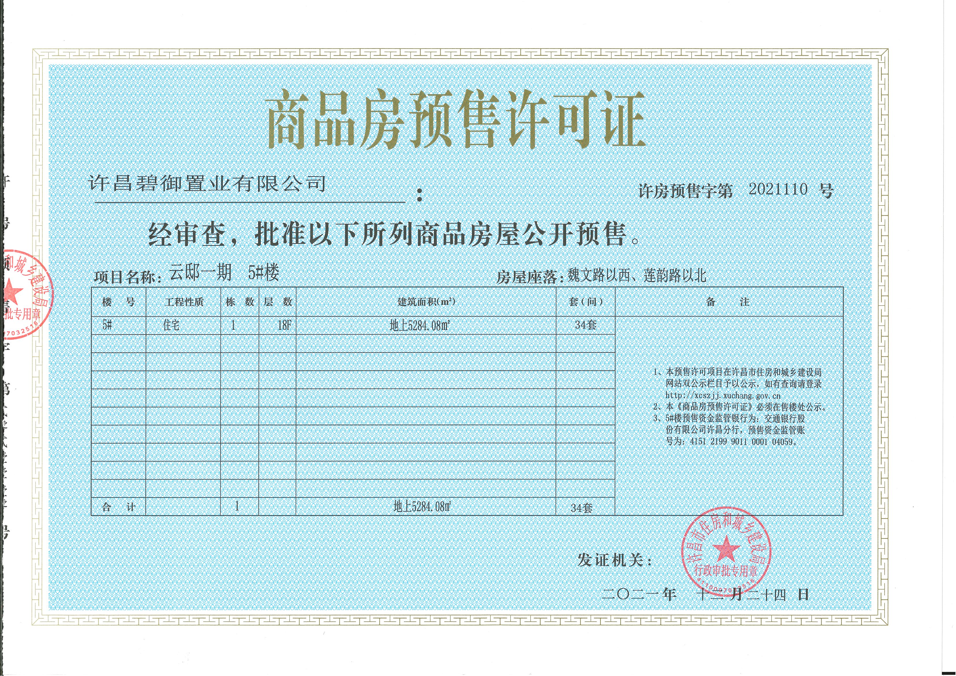 许房预售字第2021110号(许昌碧御置业有限公司)