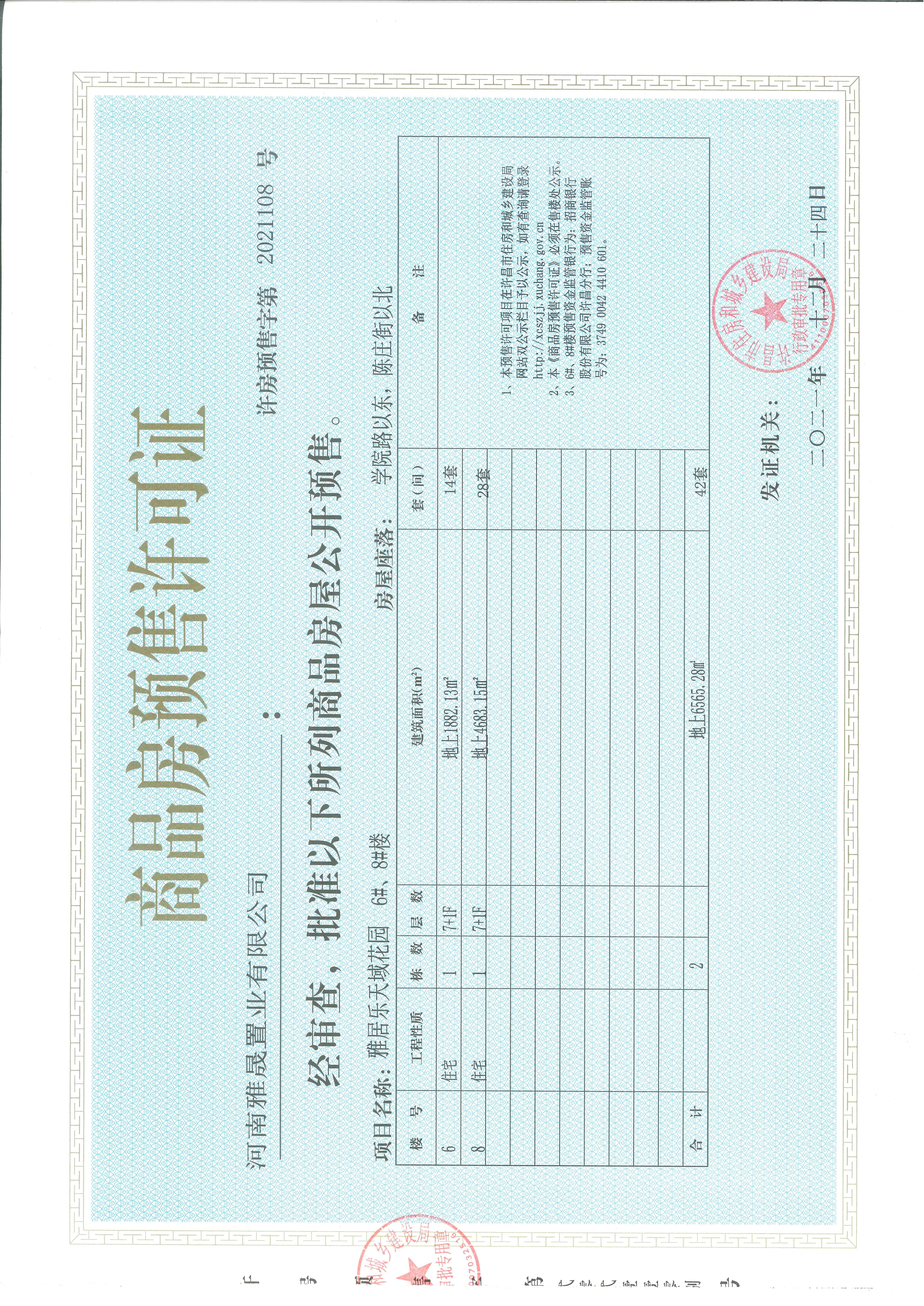 许房预售字第2021108号(河南雅晟置业有限公司)