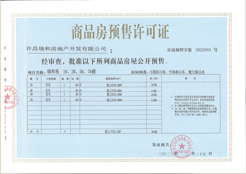 许房预售字第2022003号(许昌瑞和房地产开发有限公司)