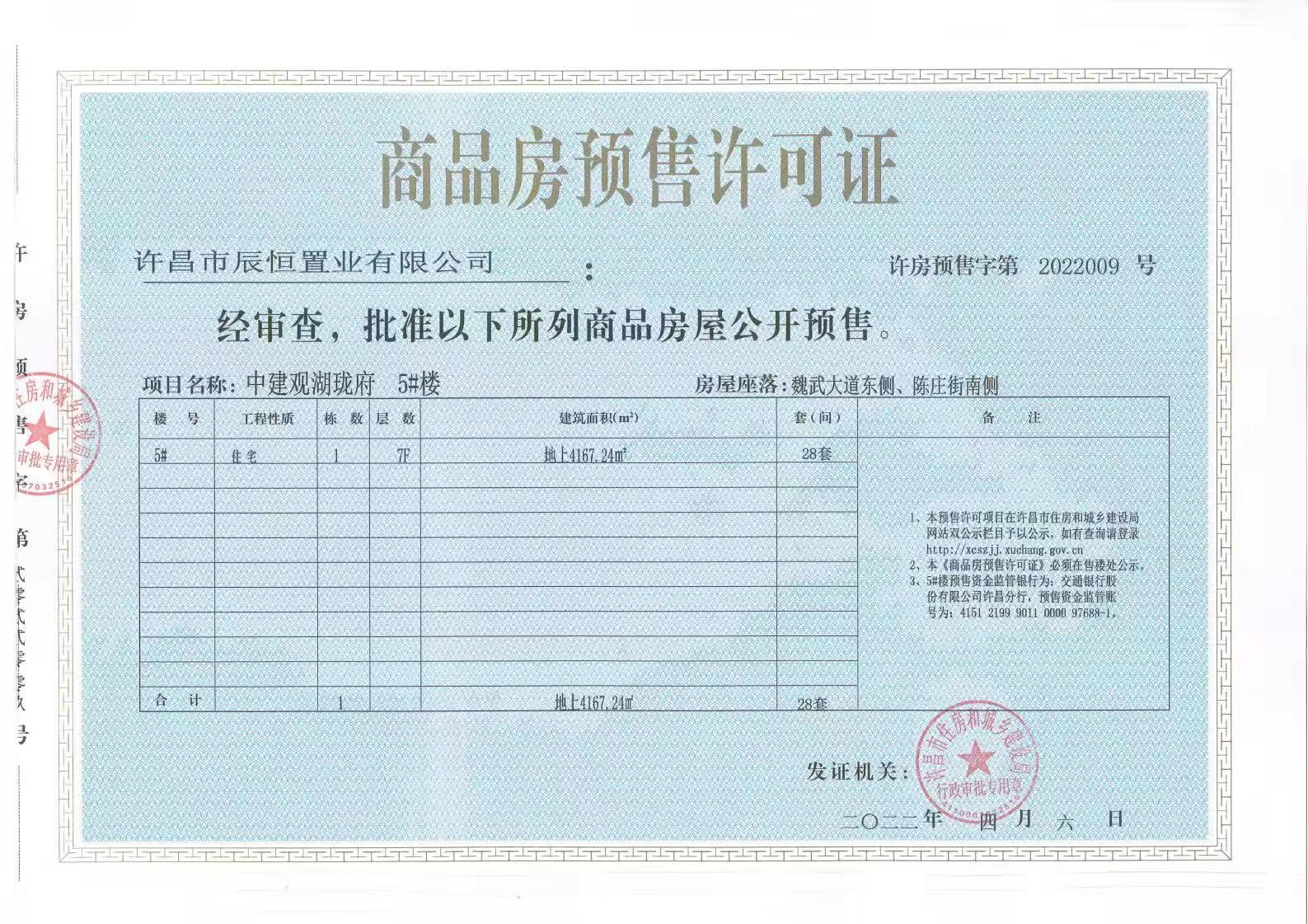 许房预售字第2022009号(许昌市辰恒置业有限公司)