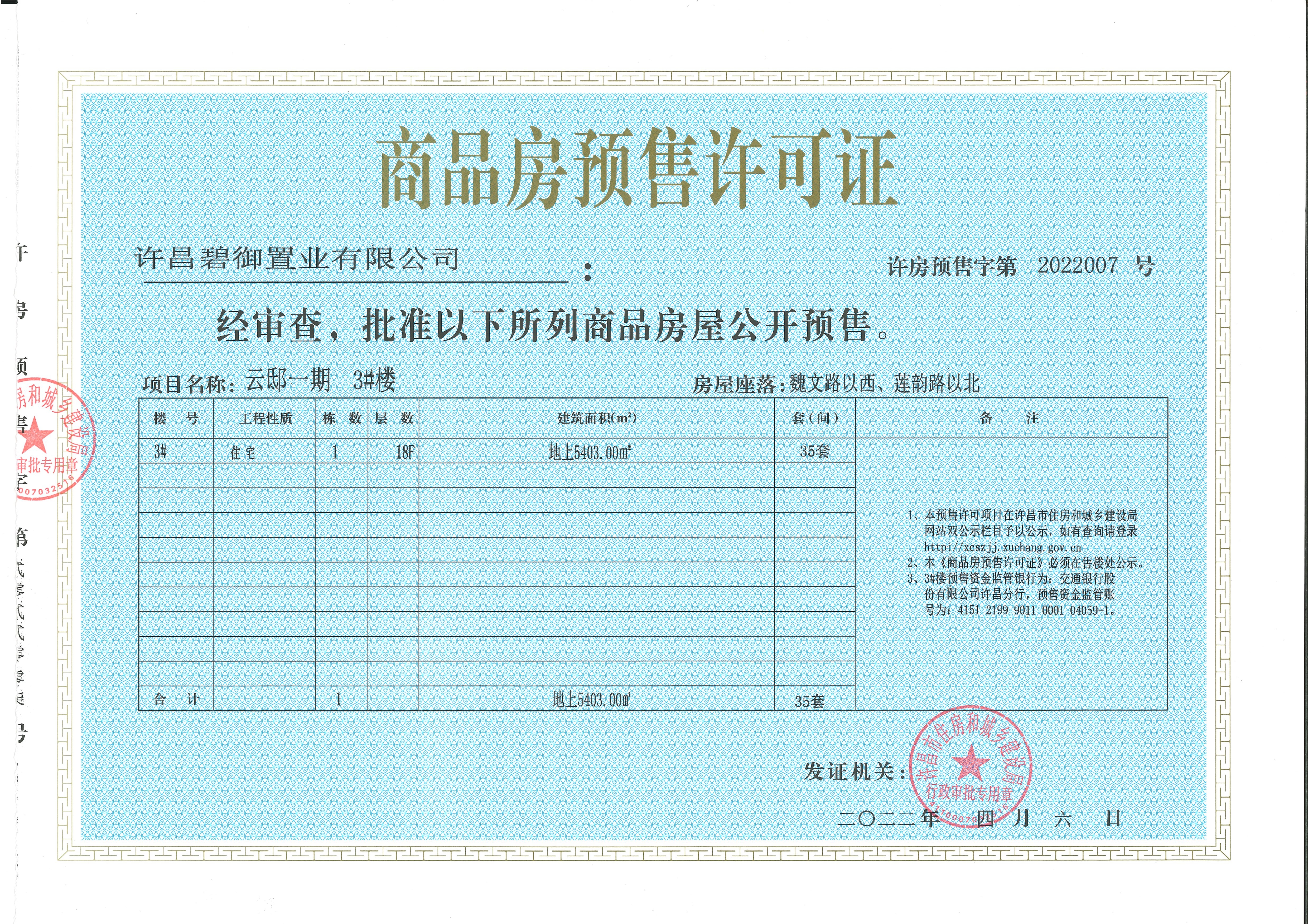 许房预售字第2022007号(许昌碧御置业有限公司)