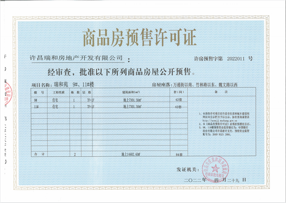 许房预售字第2022011号(许昌瑞和房地产开发有限公司)