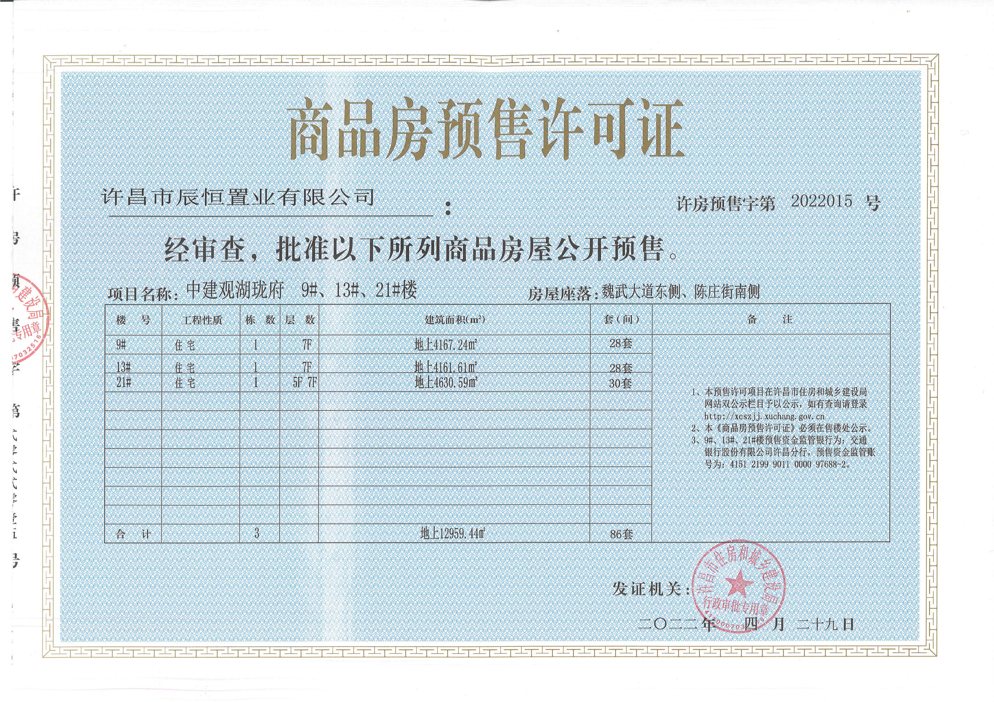 许房预售字第2022015号(许昌市辰恒置业有限公司)