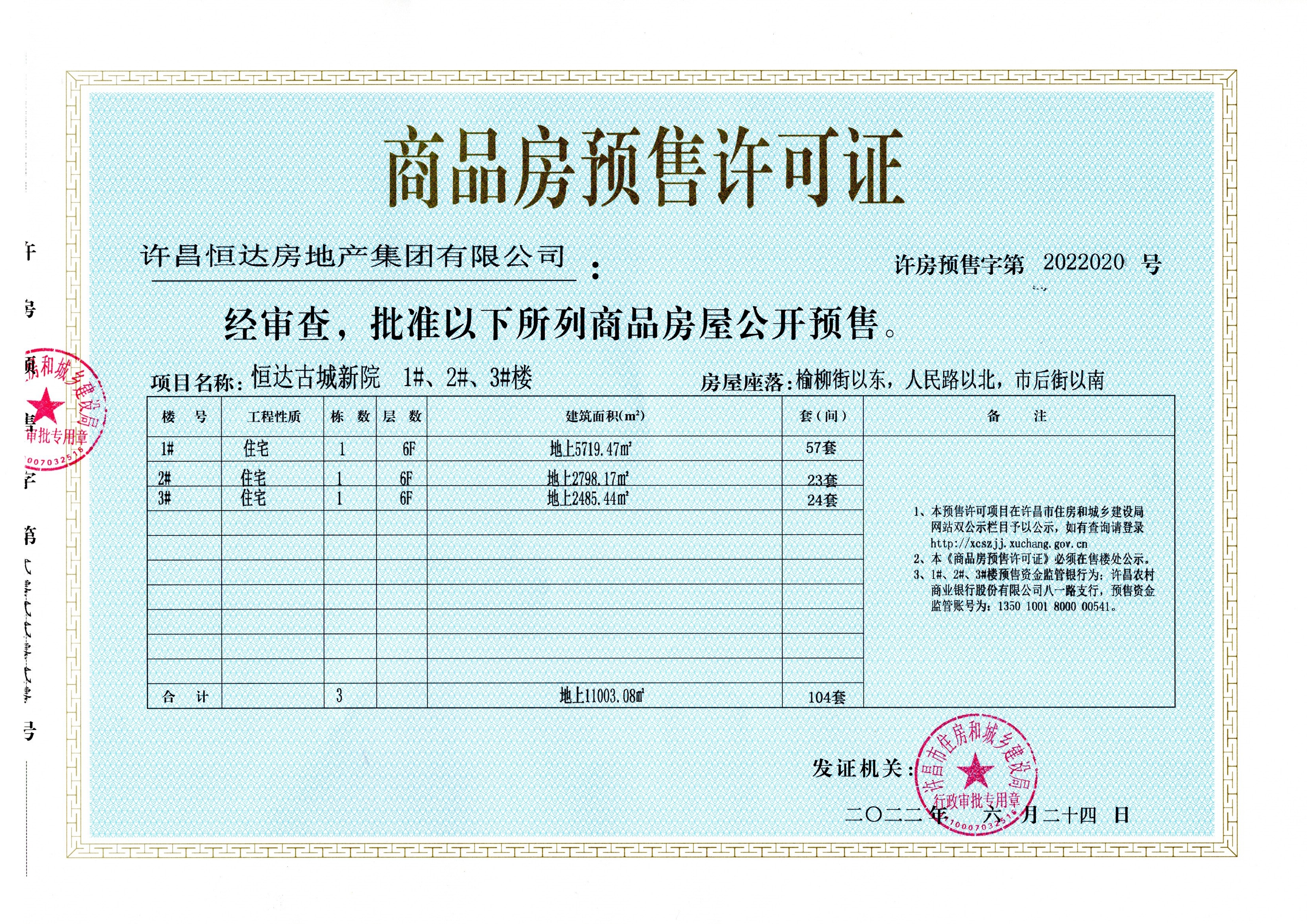 许房预售字第2022020号(许昌恒达房地产集团有限公司)