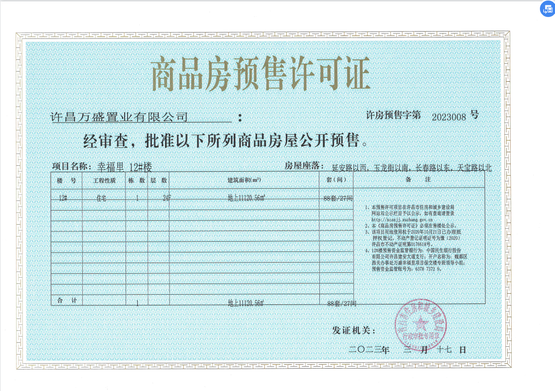 许房预售字第2023008号(许昌万盛置业有限公司)