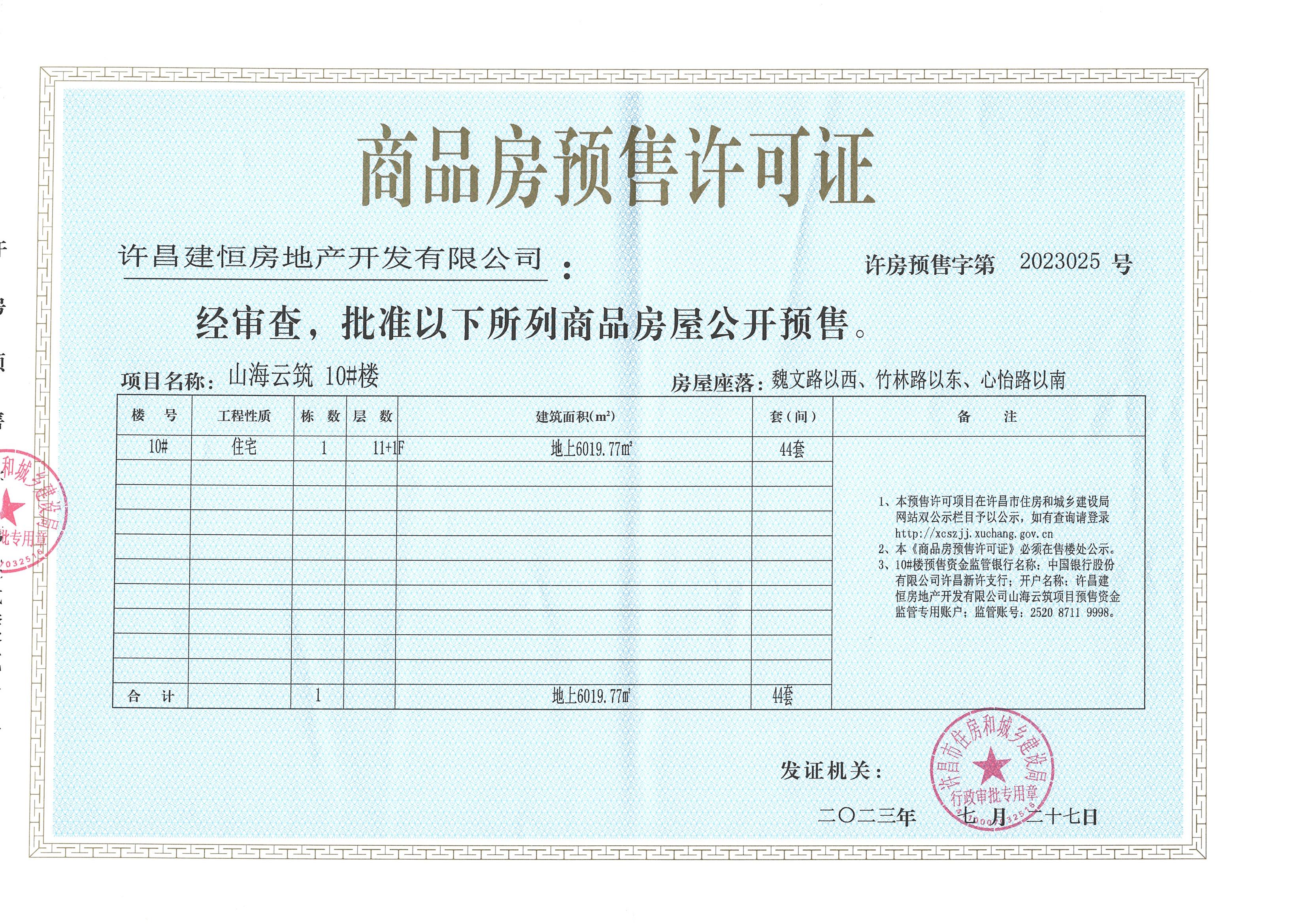 许房预售字第2023025号(许昌建恒房地产开发有限公司)