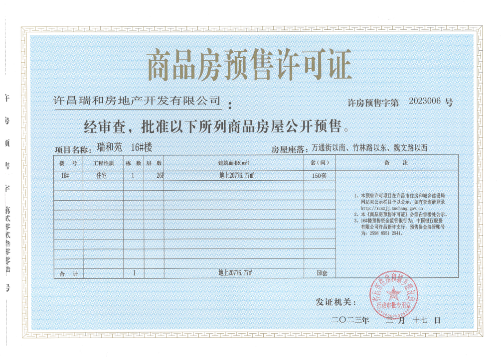 许房预售字第2023006号(许昌瑞和房地产开发有限公司)