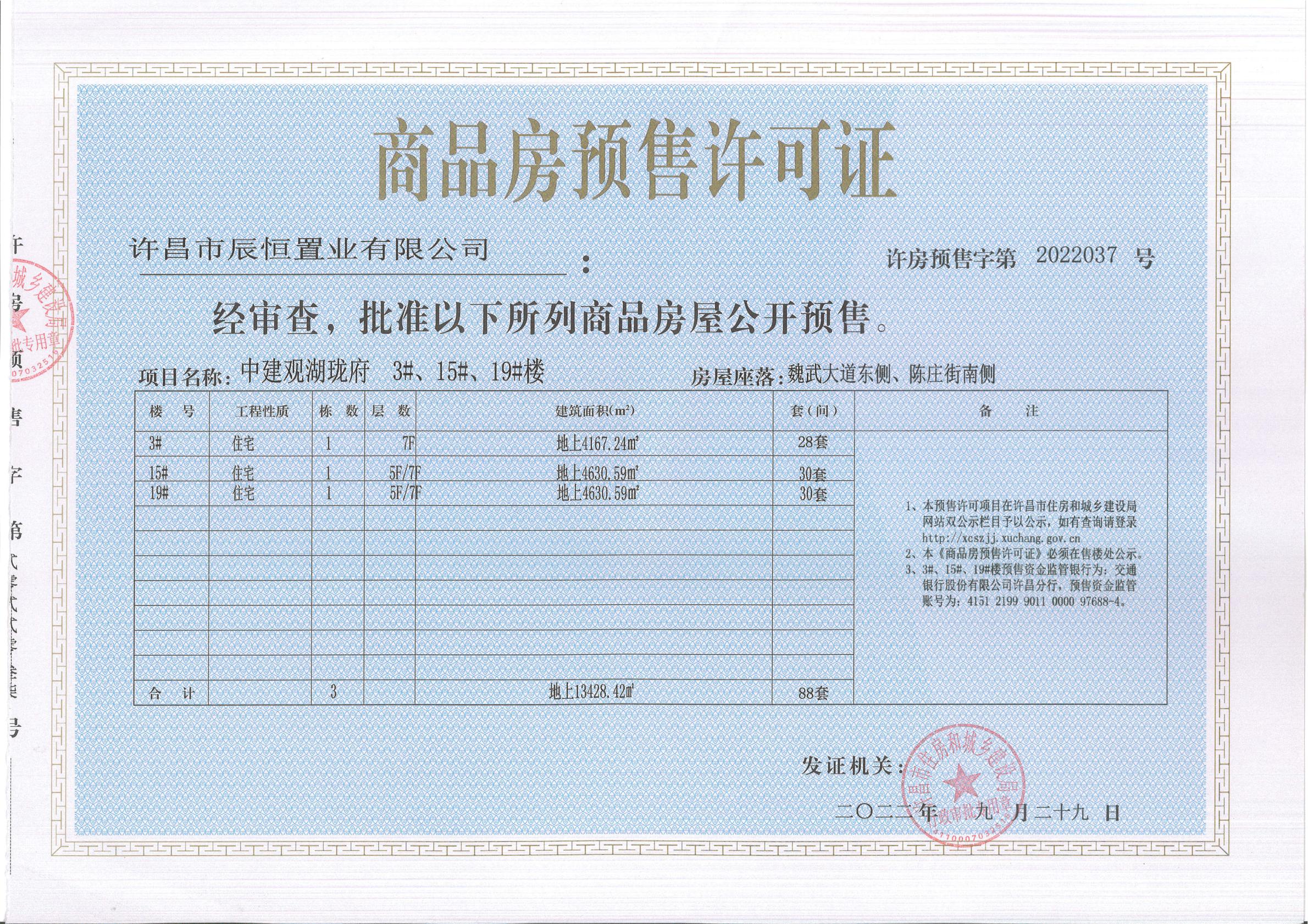 许房预售字第2022037号(许昌市辰恒置业有限公司)