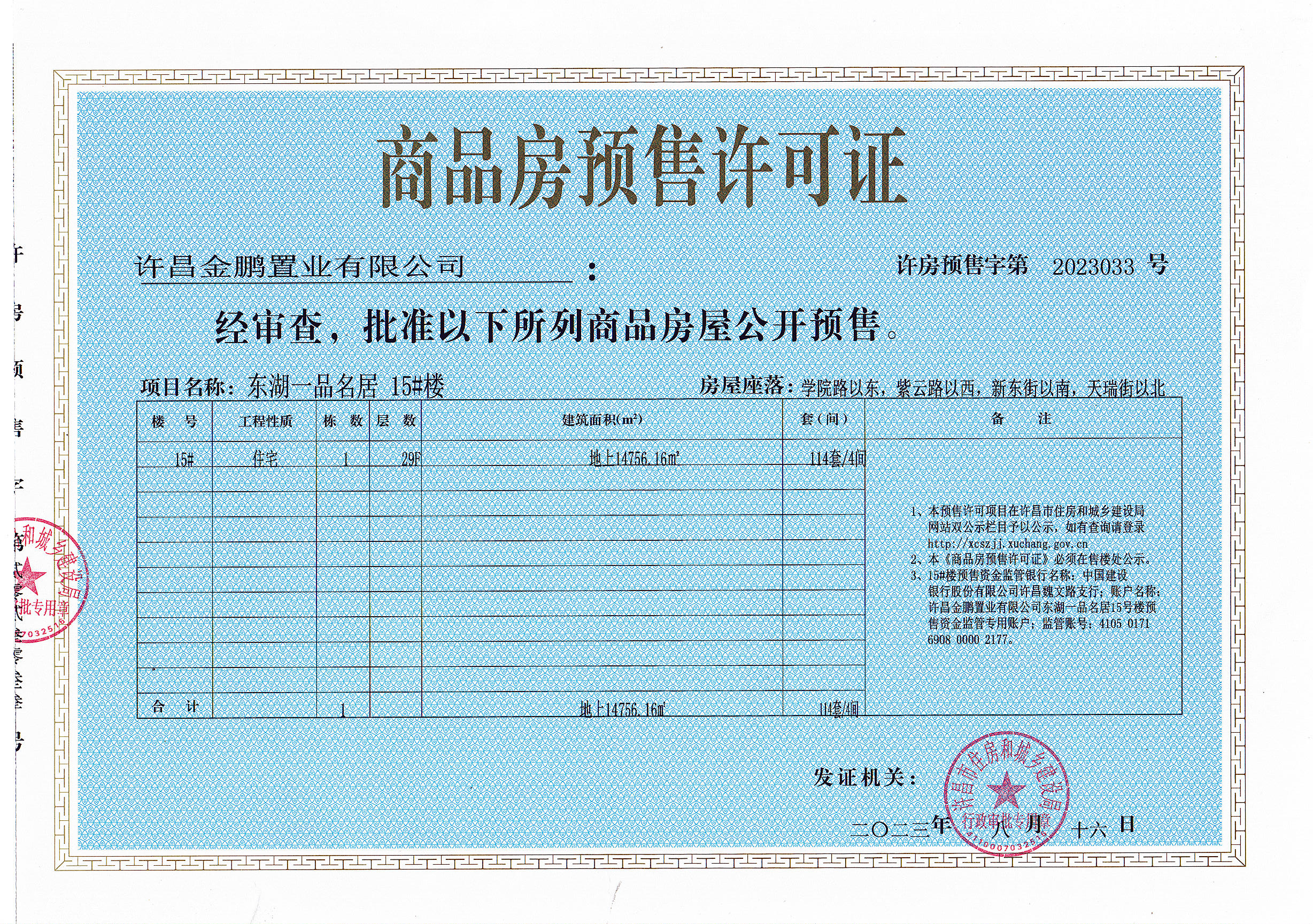 许房预售字第2023033号(许昌金鹏置业有限公司)