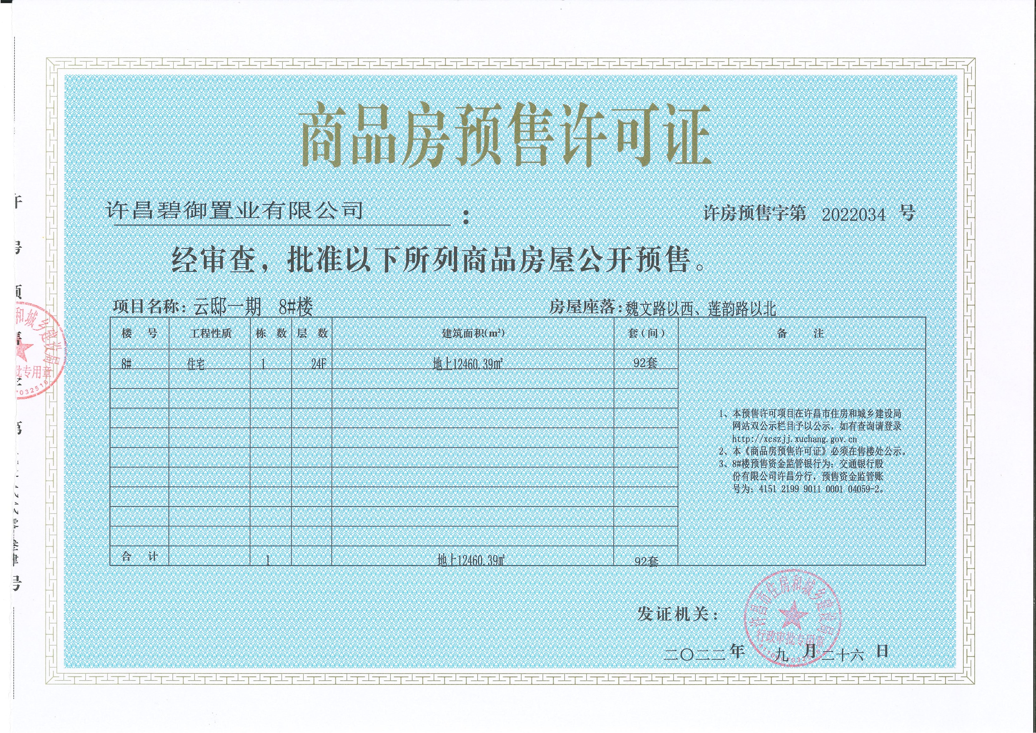 许房预售字第2022034号(许昌碧御置业有限公司)