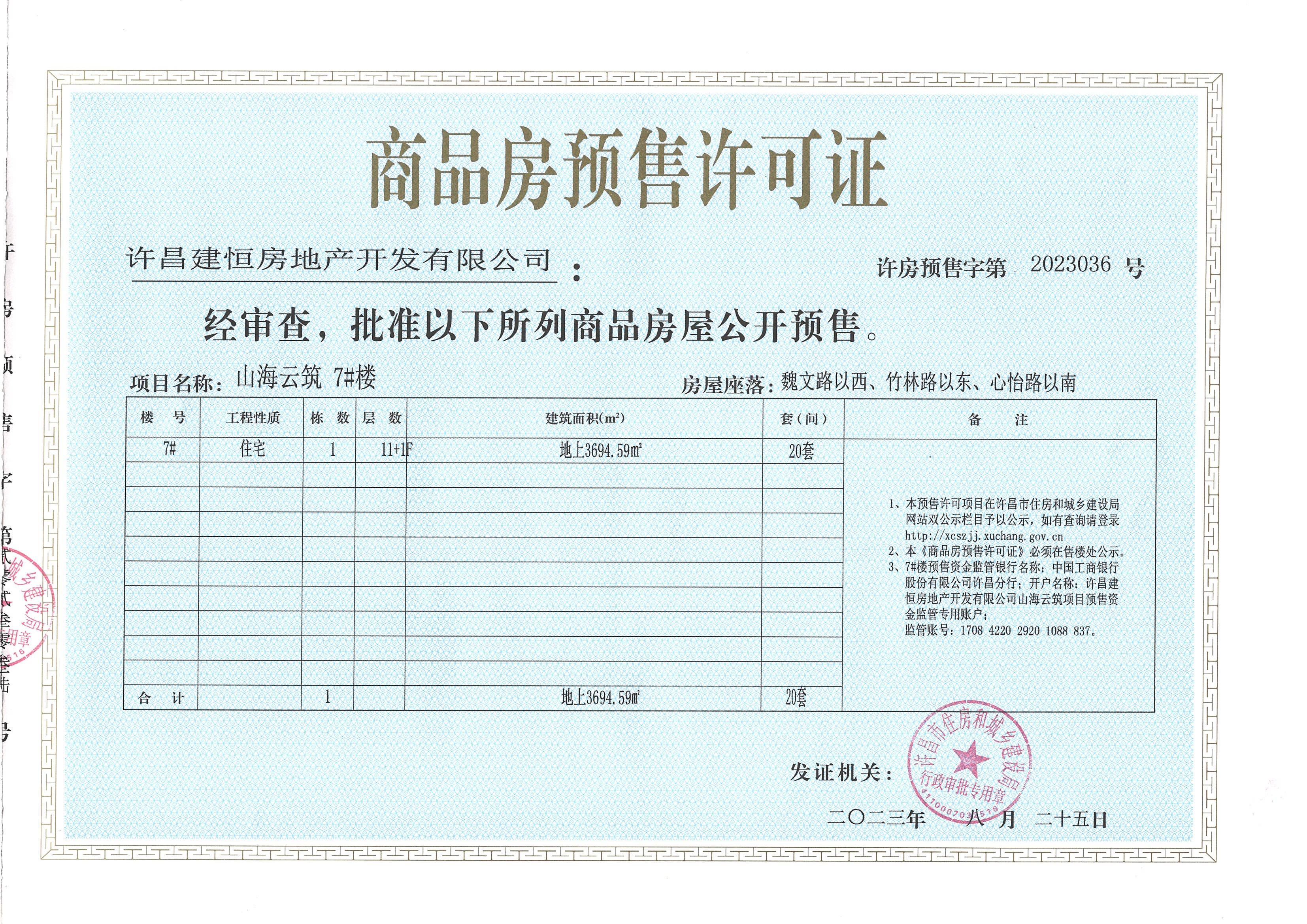 许房预售字第2023036号(许昌建恒房地产开发有限公司)