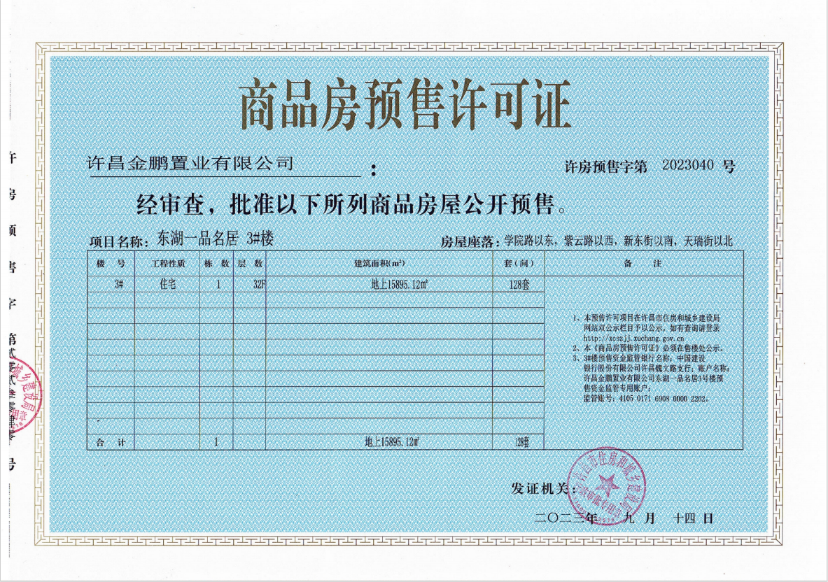许房预售字第2023040号(许昌金鹏置业有限公司)