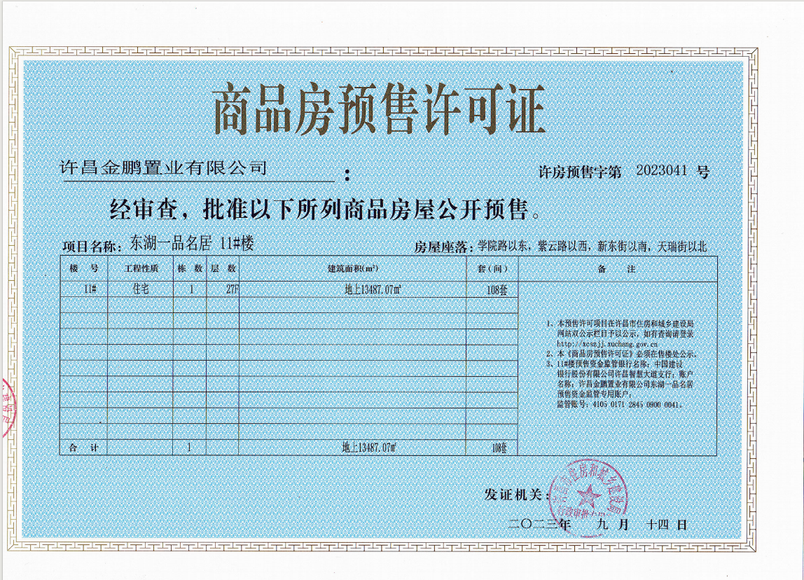 许房预售字第2023041号(许昌金鹏置业有限公司)