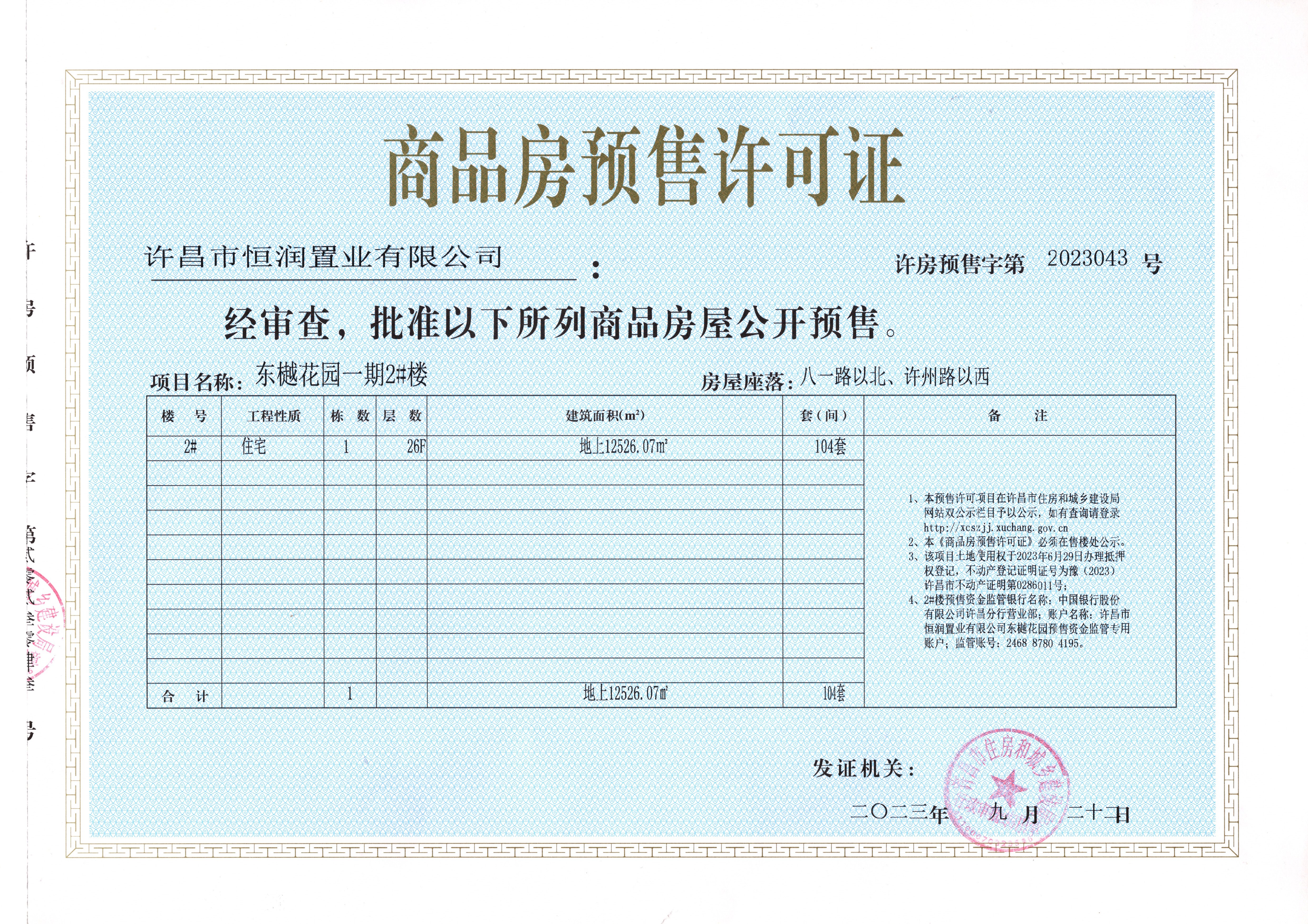 许房预售字第2023043号(许昌市恒润置业有限公司)