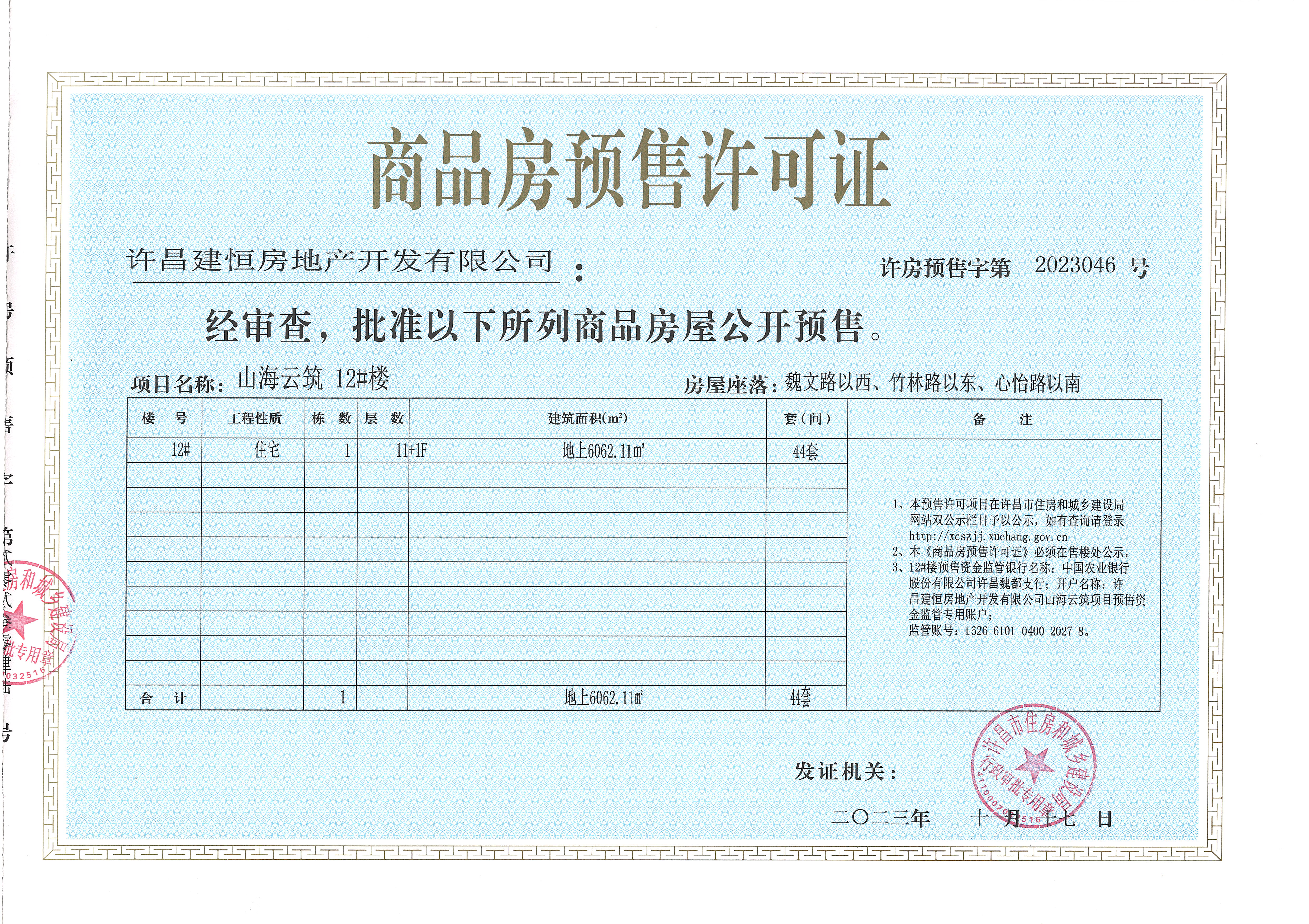 许房预售字第2023046号(许昌建恒房地产开发有限公司)