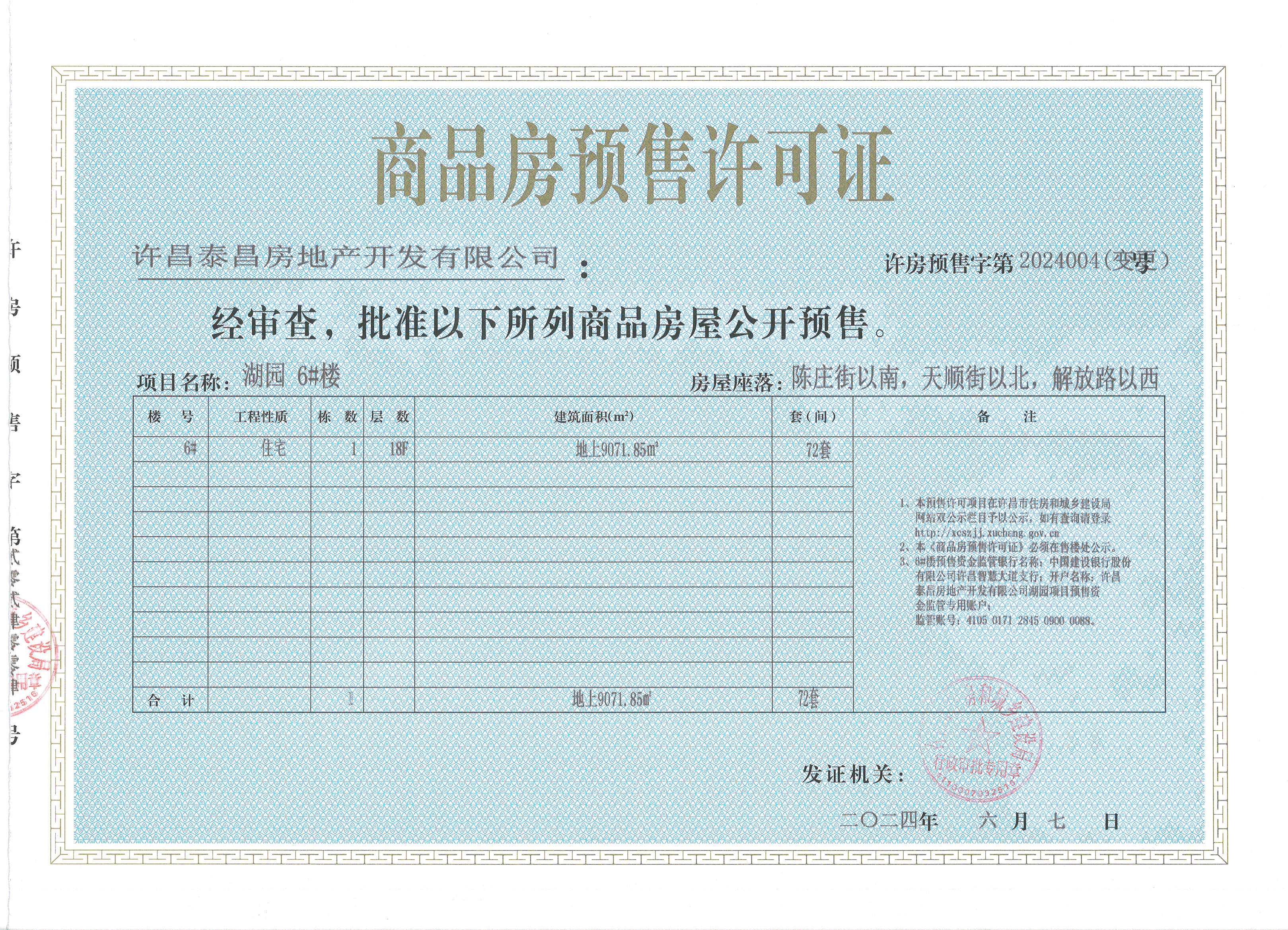 许房预售字第2024004号(变更)(许昌泰昌房地产开发有限公司)