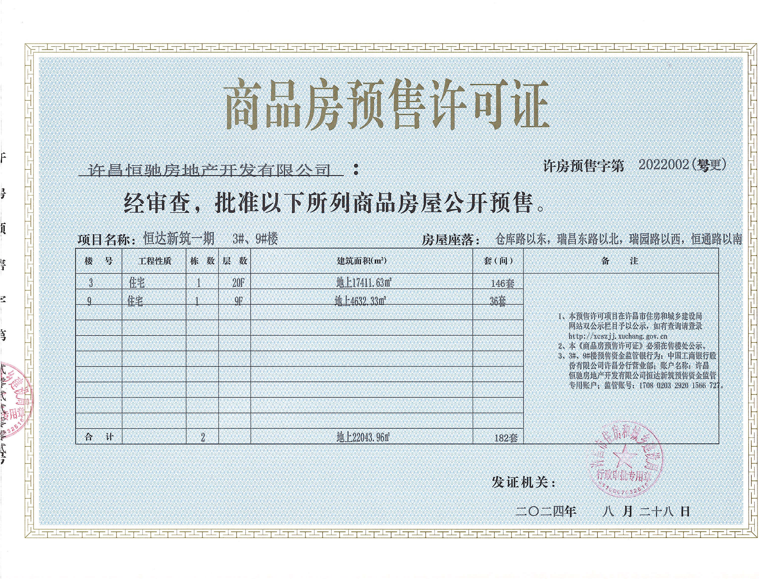 许房预售字第2022002号(变更)(许昌恒驰房地产开发有限公司)