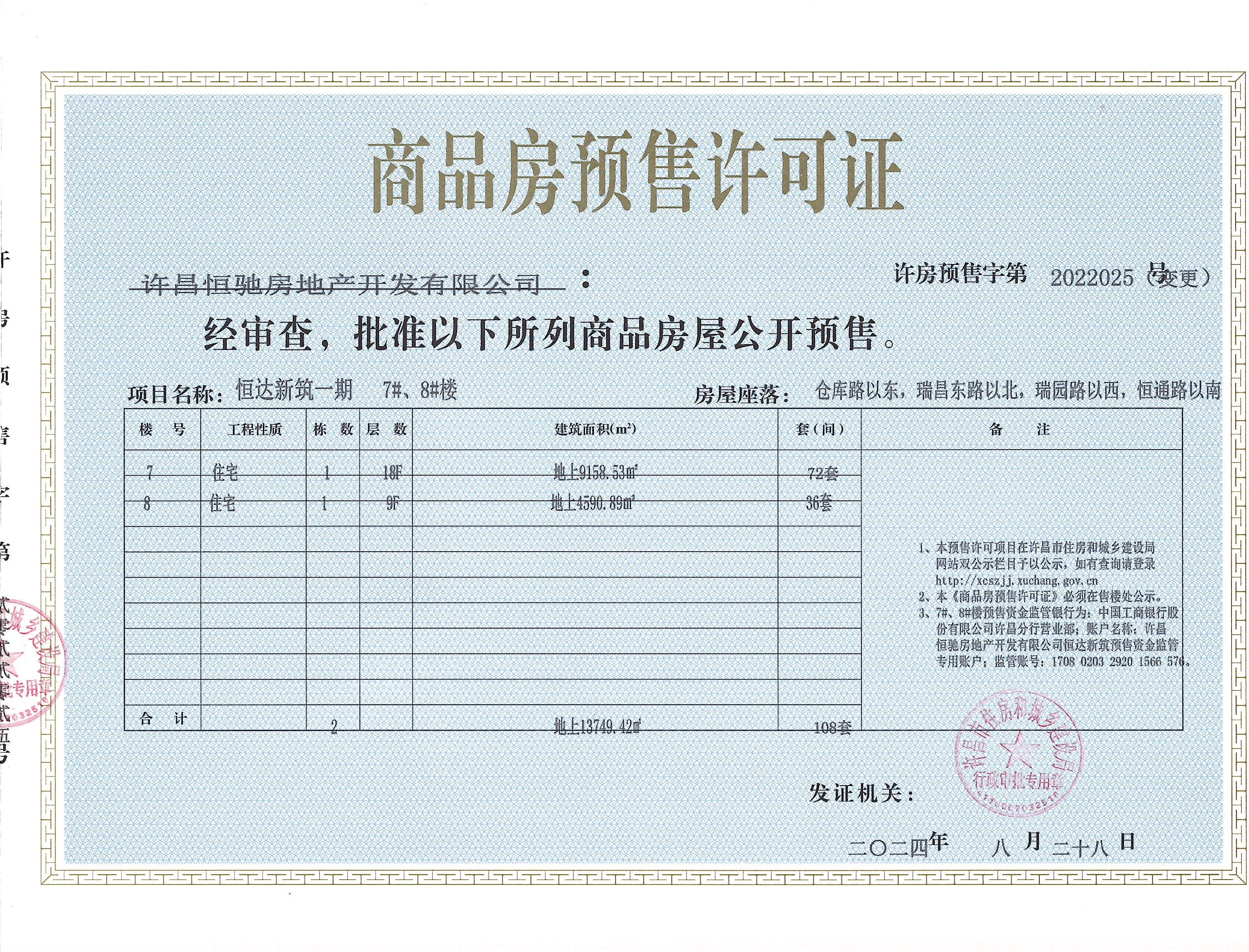 许房预售字第2022025号(变更)(许昌恒驰房地产开发有限公司)