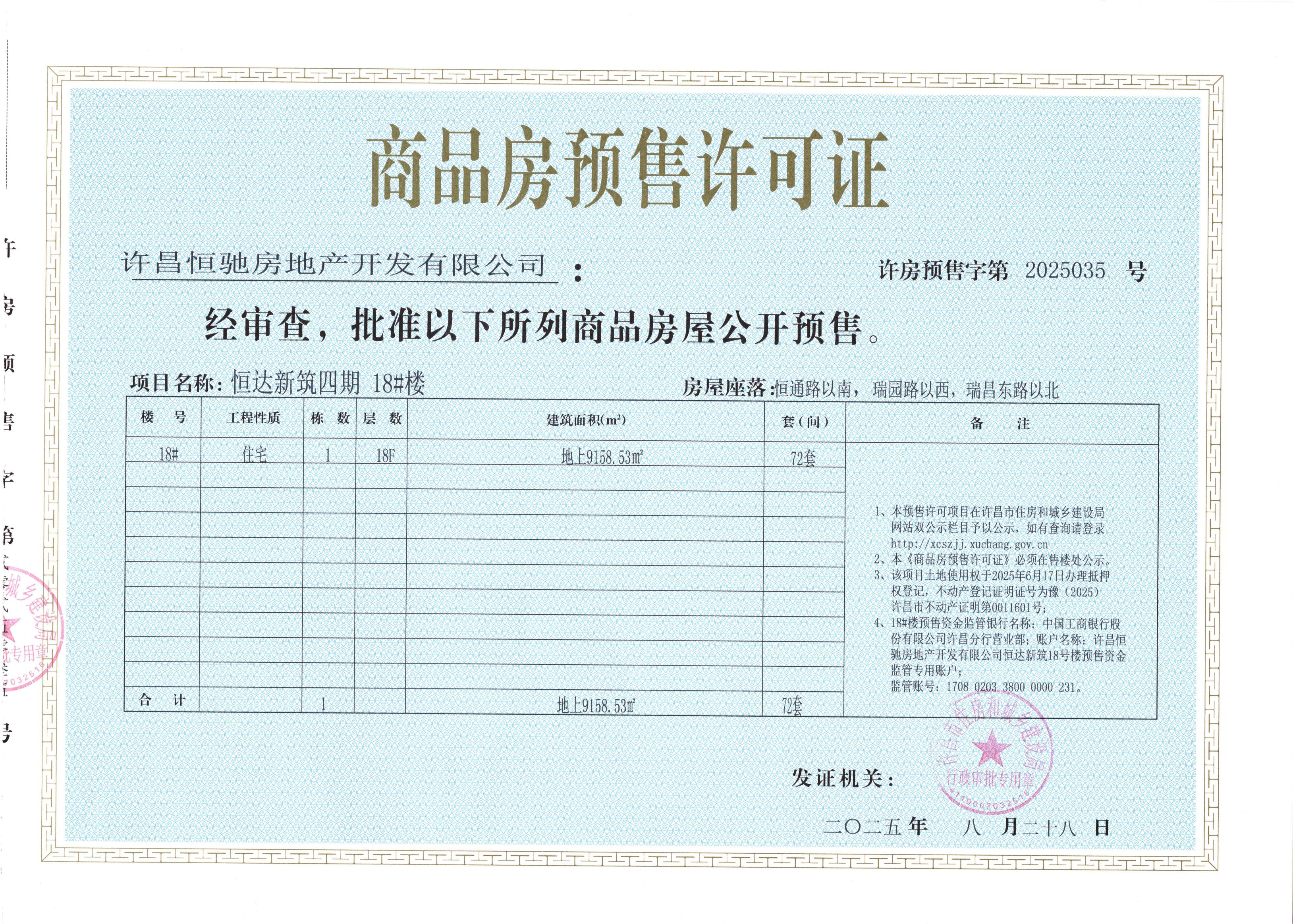 许房预售字第2025035号(许昌恒驰房地产开发有限公司)
